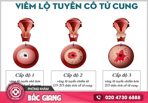 Viêm lộ tuyến cổ tử cung: Lộ tuyến là những tế bào tuyến phía bên trong cổ tử cung tăng sinh và phát triển trùm ra phía bên ngoài cổ tử cung. Chúng liên tục tiết dịch nhờn gây ẩm ướt, tạo điều kiện cho vi khuẩn tấn công gây viêm nhiễm. Lúc này, chị em sẽ thấy cơ thể mình xuất hiện những dấu hiệu dễ nhận biết như đau bụng dưới, đau lưng, khí hư như sữa chua hoặc vàng, âm đạo ngứa ngáy,…